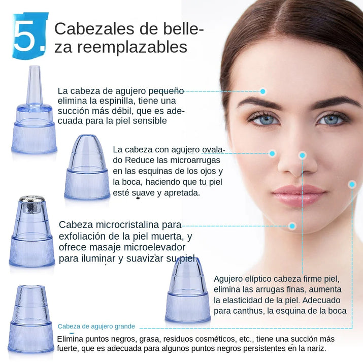 Transforma tu rutina de cuidado facial con un dispositivo que elimina puntos negros y mejora la textura de tu piel con succión al vacío de alta precisión.